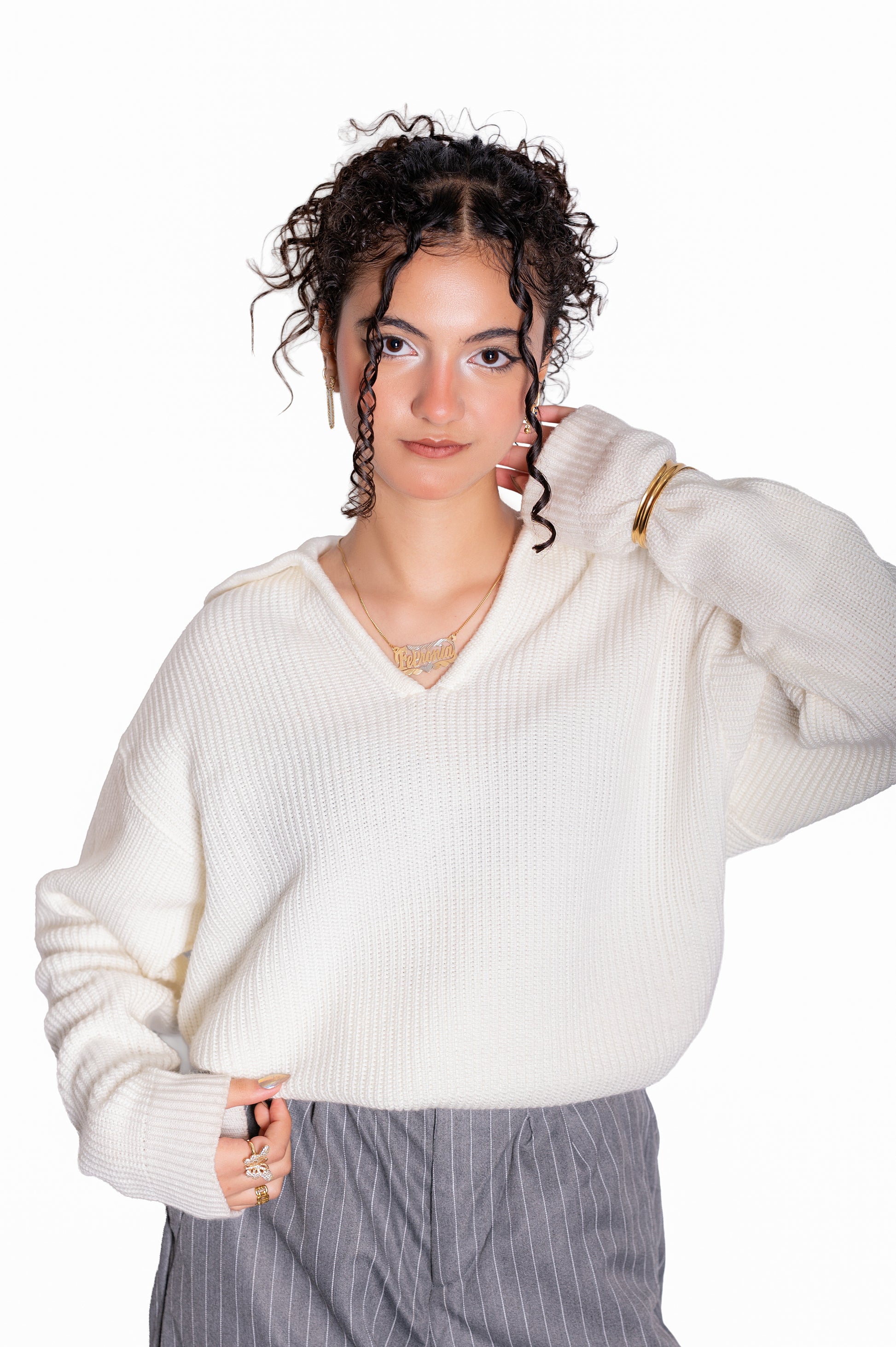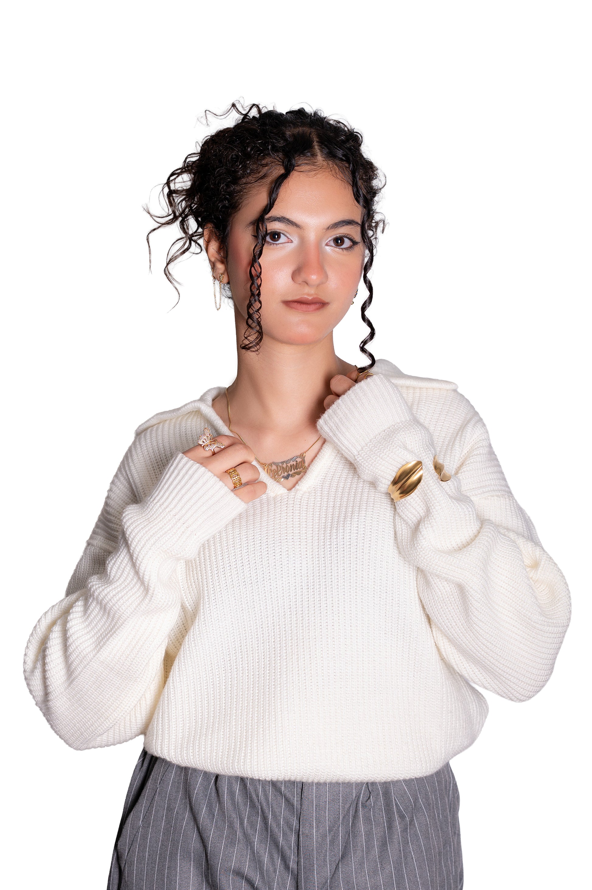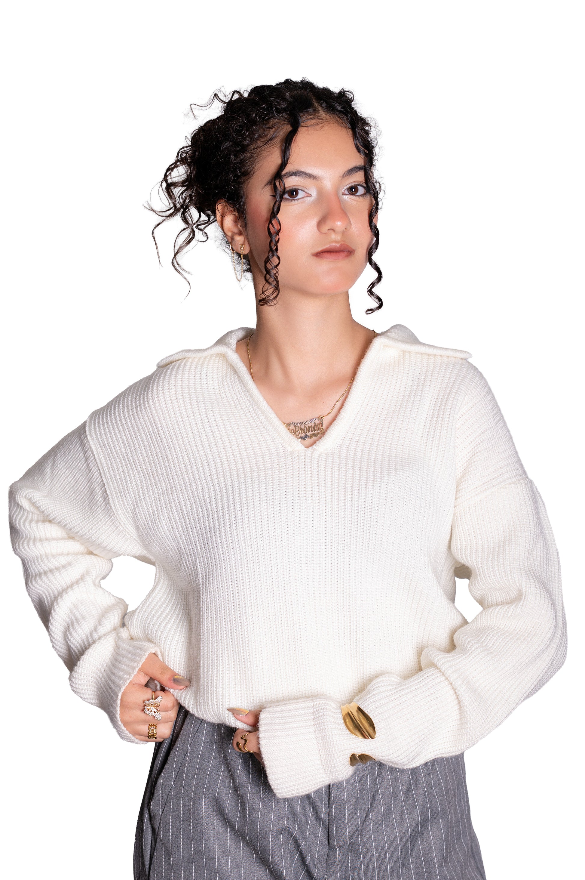 Off white knitted polo